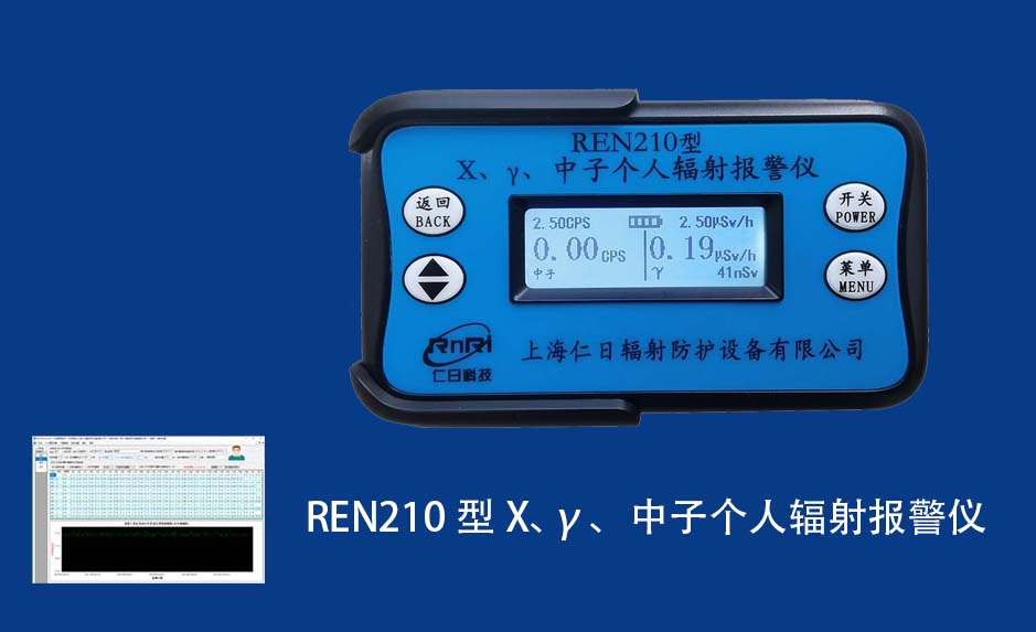 REN210型X、γ、中子個人輻射報警儀內置SiPM和鋰玻璃晶體組成中子探測器儀器,采用反照率方式探測中子射線,同時也能探測X、γ射線。因此它可同事監(jiān)檢測X、γ、中子三種射線。能顯示工作場所的劑量當量率和累積劑量,更換電池時,日期及累積數據能永久保存。可選配RenRiPersonal個人劑量管理軟件,該軟件可存儲多個人的歷史數據,能記錄日累積、月累積、年累積、輻照時長、計算平均劑量率、扣除或不扣除本底輻射,且以文字和圖譜的方式展現數據。廣泛應用于環(huán)保、化工、水泥、煤礦、土木工程、石油、醫(yī)院、疾控、進出口商檢、核電、加速器、機場、中子源庫和其他安檢、邊境控制海關檢測等